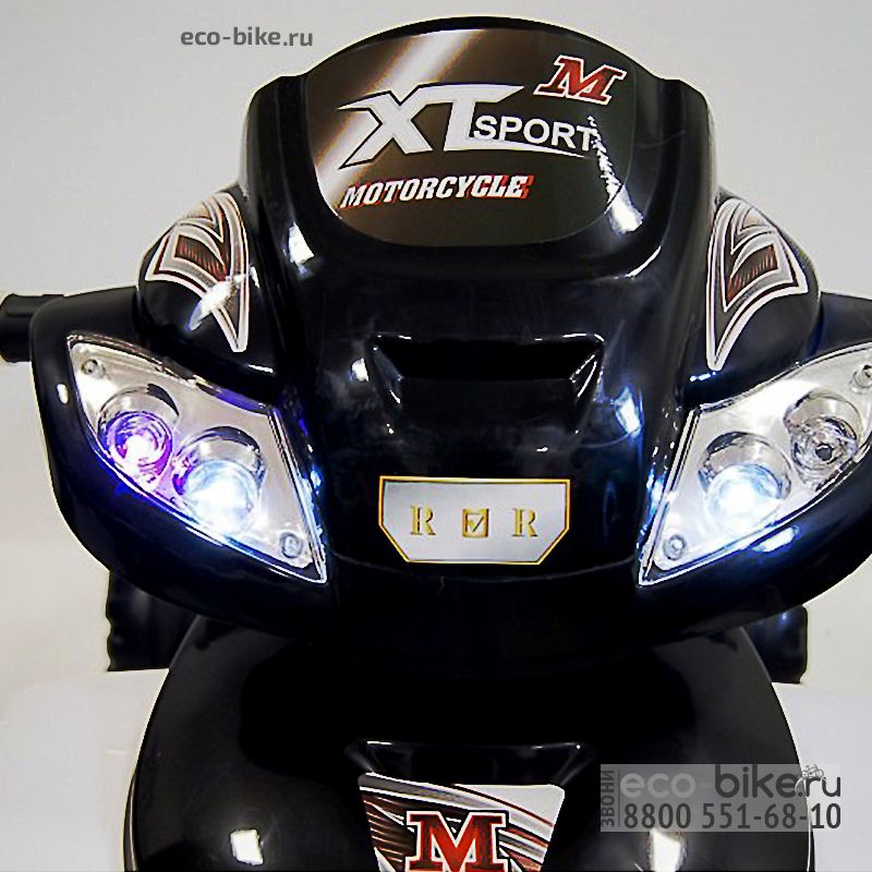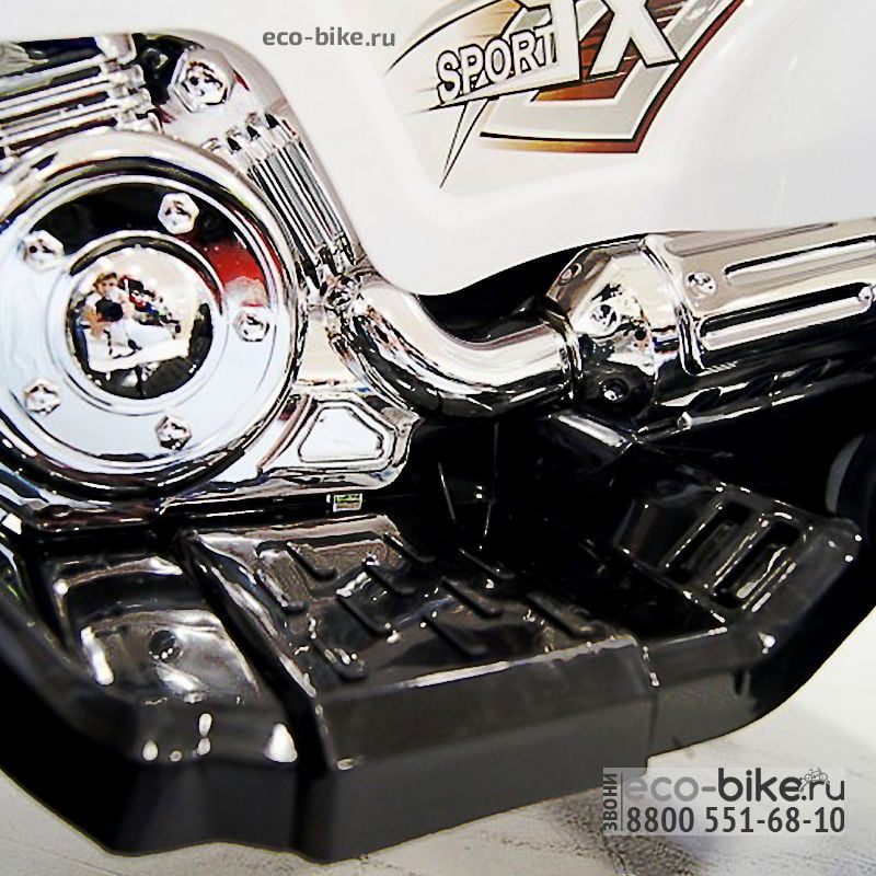 Сиденье изготовлено из мягкой пластмассы. Широкие и комфортные подножки. Мотор включается при помощи кнопки. Начало движения происходит от нажатия педали (одна вперед, 1 назад). На панели «магнитола», в которой есть разъемы для USB, Bluetooh, микро-карт, смартфона и плеера, а сам руль музыкальный с заводскими мелодиями. Ручки очень приятные и плотные, маленькие ручонки не будут скользить т.к. на них прорезиненные накладки. Водит только ребенок, т.к. пульта ДУ нет. Подсветка передними фарами, вечером это смотрится очень эффектно.