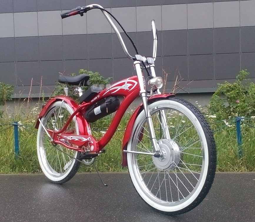 Электровелосипед Чоппер Micargi Falcon GT 36V 500W оснащен редукторным мотор колесом Bafang мощностью 500Вт. 36В. При изготовлении круизера за основу взята модель Miсargi Falсon Burgundi. Установлена съемная батарея на 11 А/ч. Чоппер развивает скорость до 35км/ч. и может проехать дистанцию в 35 км. без помощи педалям. Если еще и педалями помогать в режиме pedal assistant, дистанция существенно увеличивается. Установлены профессиональные дисковые тормоза и спереди и сзади. Колеса 26" и 2.1" толщиной. Обода усиленные двойные 46мм. Рама стальная, красного цвета. Комфортное сиденье с амортизаторами для настоящих ценителей удовольствия за рулем байка.