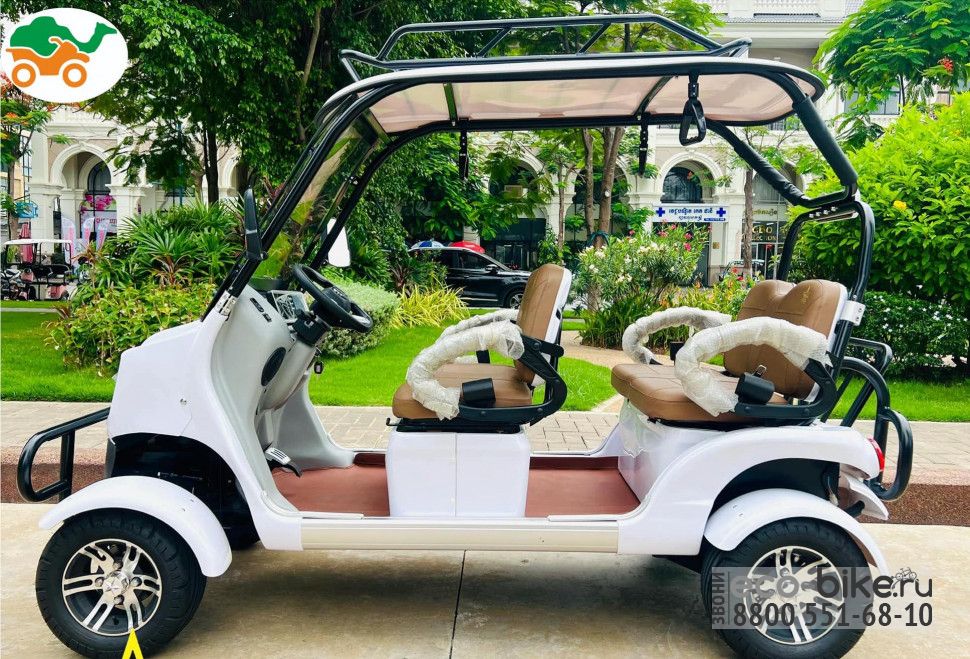 Четырехместный гольфкар представляет собой электрическое транспортное средство, спроектированное для перевозки четырех пассажиров, часто используется на гольф-полях, в коммерческих и индустриальных сферах, таких как курорты, заводы, склады, аэропорты, парки и другие места, где требуется эффективный и экологичный способ перевозки пассажиров. Электрические гольфкары считаются более экологичными, так как не выбрасывают вредных газов и имеют низкий уровень шума, что особенно важно в рабочих местах, где шум может быть проблемой.