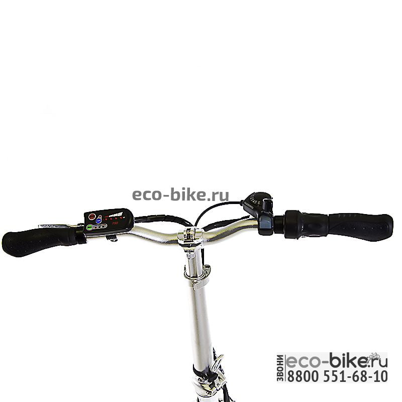 Управление электровелосипедом производится посредством половинчатой ручки газа, обеспечивающей большую степень контроля. С правой стороны на ручке находится управление скоростями. С левой стороны ручка служит управлению транспортным средством. Данная панель управления содержит кнопку для включения аккумулятора, кнопку переднего фонаря. Здесь показан уровень заряда и отсюда производится управление PAS.